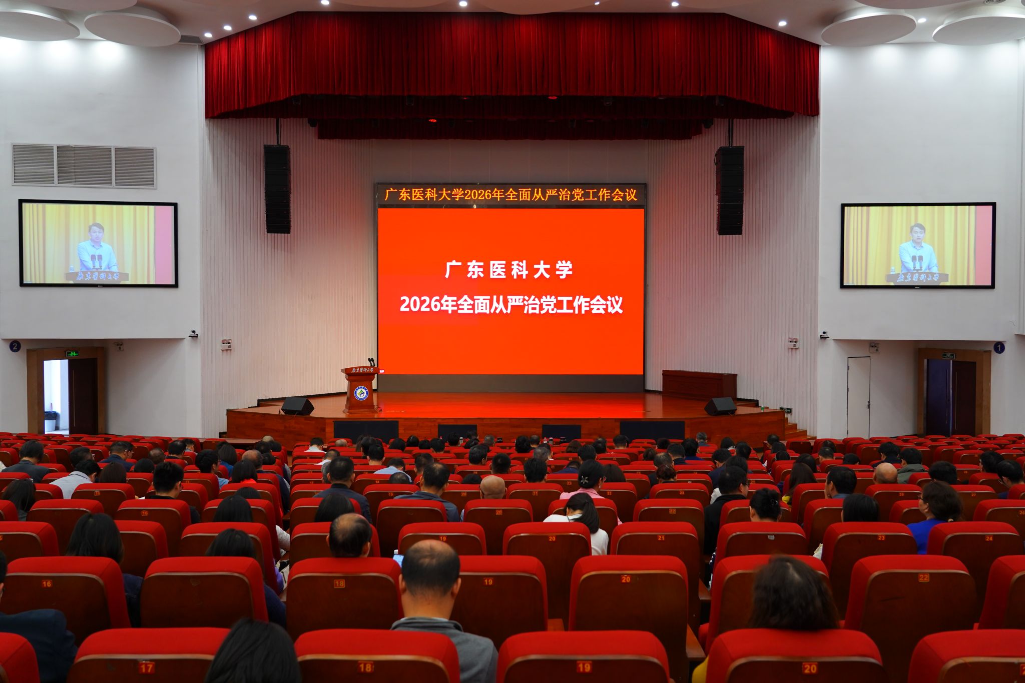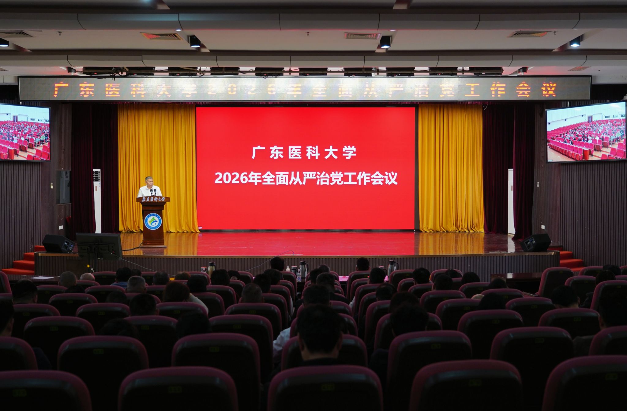 3月12日,学校召开2026年全面从严治党工作会议,学校党委副书记、校长肖炜作全面从严治党工作报告。学校党委副书记、纪委书记、广东省监委驻广东医科大学监察专员向献兵作学校纪检监察工作报告。