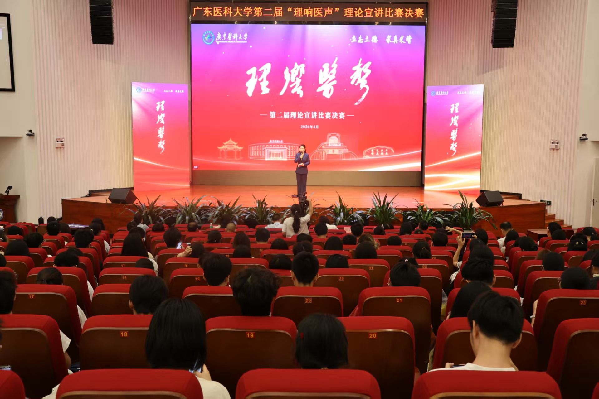 4月12日晚,广东医科大学第二届“理响医声”理论宣讲比赛决赛在东莞校区图书馆报告厅与湛江校区新教学楼9楼报告厅同步举行。10名决赛选手紧扣活动主题,以鲜活故事和真挚情感传递党的创新理论,为现场师生呈现了一场思想性与感染力兼具的理论宣讲盛宴。