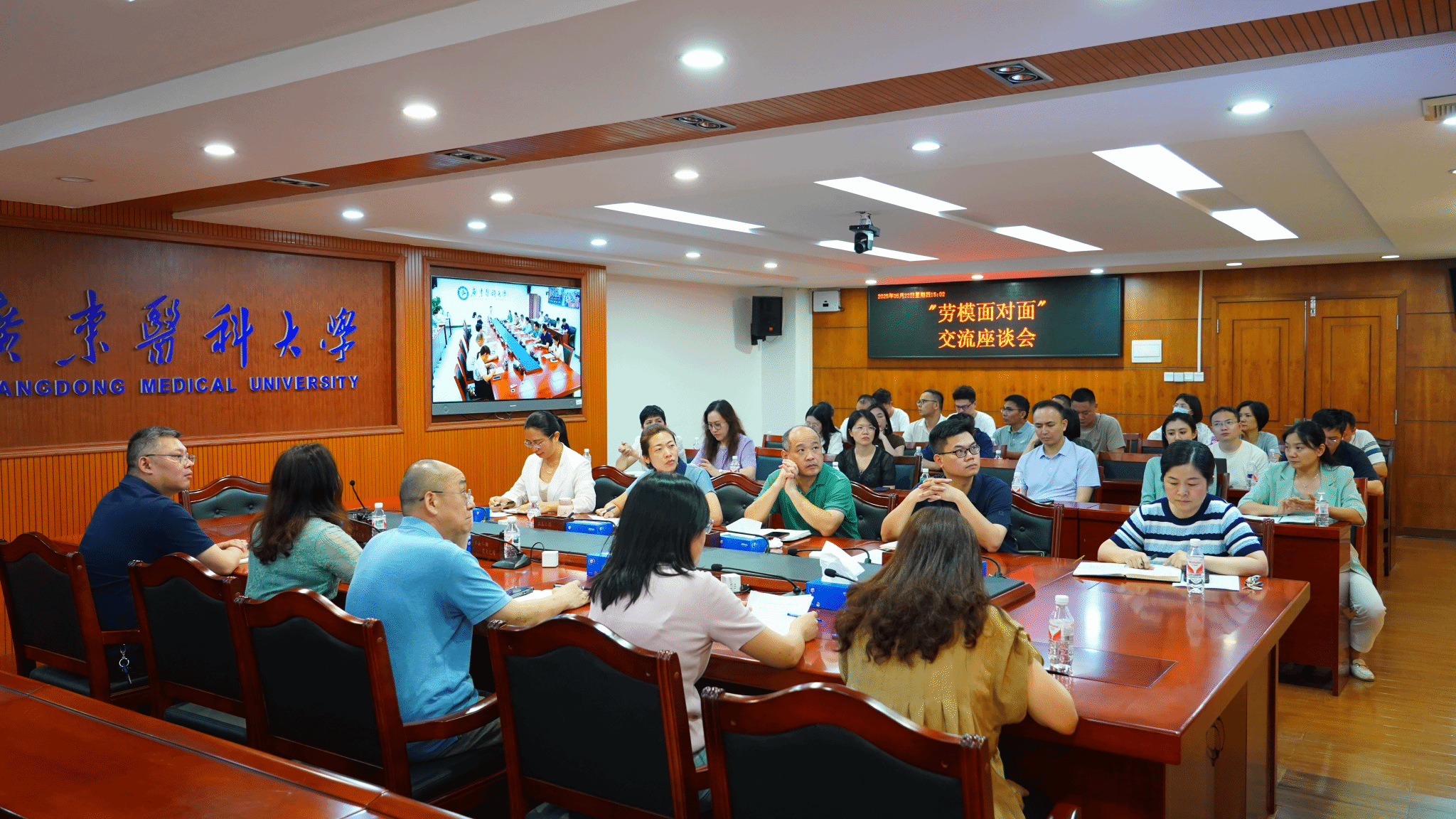 为庆祝中华全国总工会成立100周年,弘扬劳模精神、劳动精神、工匠精神,激发广大教职工的劳动热情和创新活力,5月22日下午,学校工会在两校区第一会议室召开“劳模面对面”交流座谈会。校党委副书记、工会主席黄达海,湛江市劳动模范代表、先进集体代表,工会委员会委员,各工会分会委员,附属医院、附属第二医院工会常务副主席,教师代表等参加座谈会。座谈会由校工会专职副主席李黎主持。
