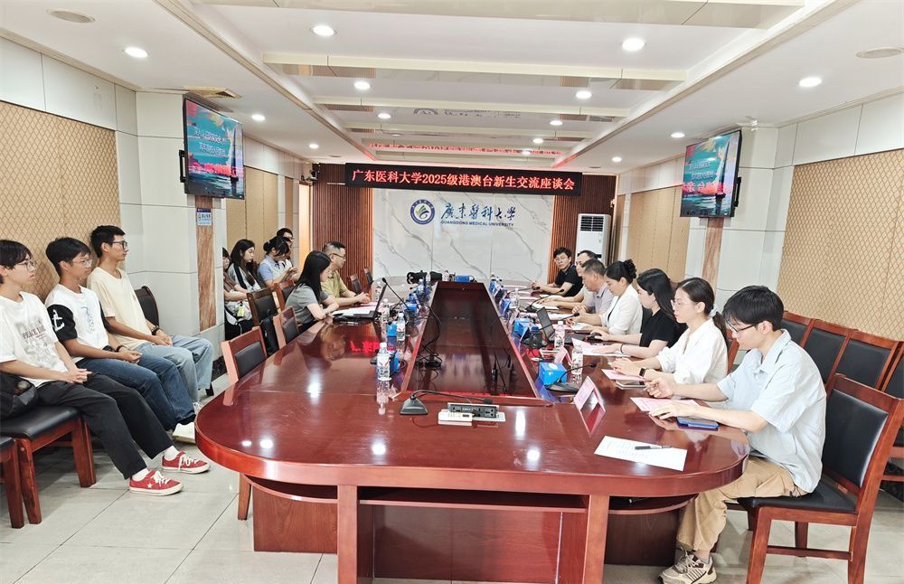 9月28日,广东医科大学2025级港澳台新生交流座谈会在东莞校区行政楼第二会议室举行。东莞市国家安全人民防线建设领导小组办公室代表杨柳、朱寅清,学校对外交流合作部、教务部、第二临床医学院、人文与管理学院相关领导、新生辅导员,以及2025级10名港澳台新生代表共同参加了本次交流座谈会,会议由对外交流合作部郭绍波主任主持。