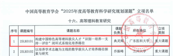 此次我校获中国高等教育学会和广东省高等教育学会多项课题立项,不仅是对我校教育科研实力及各项课题教研团队研究能力的认可,更标志着我校在医文、医理、医工交叉融合领域的推进取得阶段性成果,将为我校高等理科教育改革与跨学科人才培养提供有力支撑。后续,高等教育研究与教师发展中心将全力支持各项课题研究推进,并以此为契机,结合新时代高等教育发展趋势,以服务教师专业成长为核心,深化教育科研服务体系建设,既为学校高水平大学创建注入动力,也为广东省乃至全国高等教育高质量发展贡献更多 “广东医智慧”。(文/张瑜 审核/王瑾 复核/周圆 审发/裴金涛)
