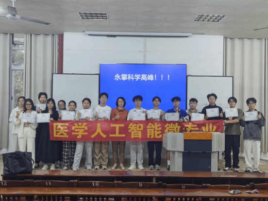 “医学人工智能”微专业开设是学校探索“医学+人工智能”跨学科人才培养重要举措,于2024年首次开班,主要面向临床医学类、生物医学工程等专业的学生开放,需完成“智能医学导论”“人工智能编程基础”“智能医学影像处理技术”“智能医学工程综合实践”等5门核心课程,融合了医学基础理论与机器学习、深度学习等AI技术。
