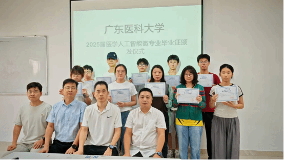 2025年10月,广东医科大学两校区分别举行医学人工智能微专业首届学习证书授予仪式,38名毕业生正式获得由学校颁发的微专业证书。