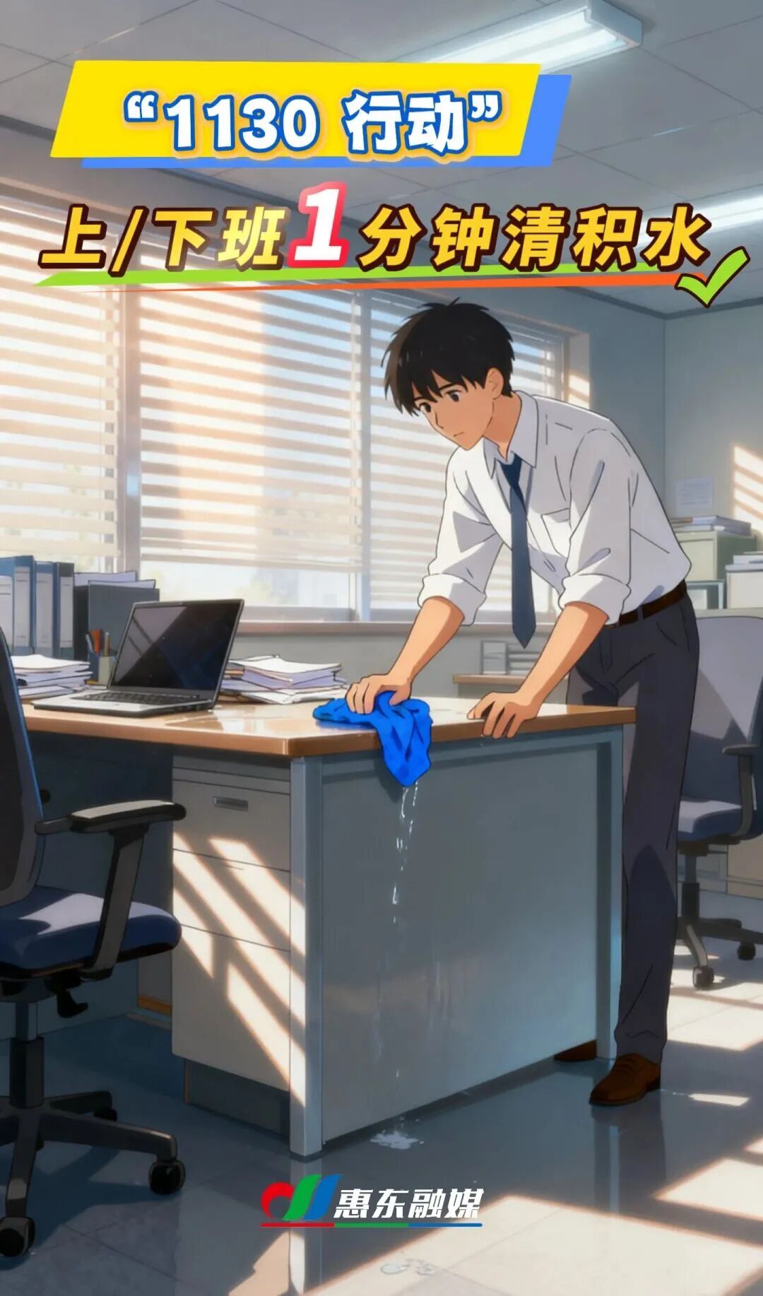 上下班1分钟清积水:倡导市民在上班后或下班前,花费1分钟检查并清理本人办公区域及公共区域的小型积水容器。