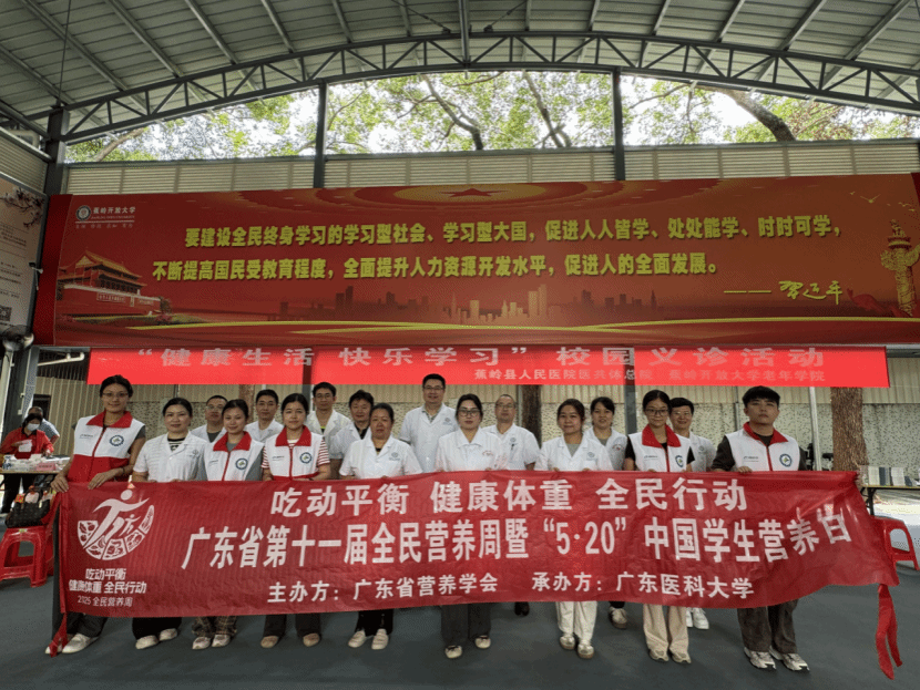 本届全民营养周以“吃动平衡 健康体重 全民行动”为主题,是贯彻《健康中国行动》的重要举措。活动期间,广东医科大学公共卫生学院依托营养与食品安全系的学科优势,组织了系列特色科普活动:在校内举办营养游园会,设置药膳体验、膳食宝塔互动、趣味运动等环节,吸引300余名师生参与;深入基层,联合蕉岭县人民医院,到学校“健康科技小院”所在地梅州市蕉岭县开展校园义诊活动,累计服务群众超500人次。学院凭借专业的科普内容、创新的活动形式,赢得社会各界广泛好评。
