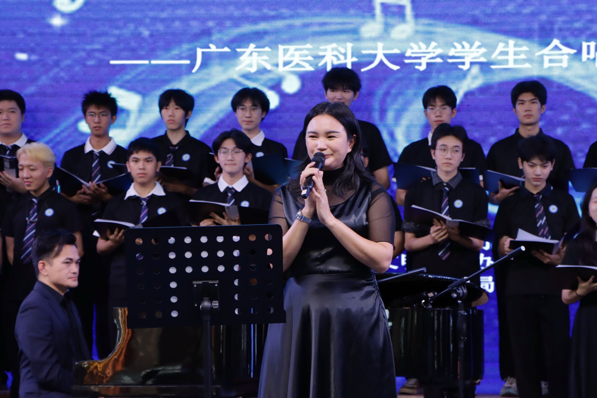 音乐会以混声合唱《让世界充满爱》开篇,纯净和声迅速打动观众。指挥陈海容介绍,音乐会以“爱”为主题,演唱者均为广东医科大学医学专业学生,用歌声传递真挚情感,传播医学人文精神。