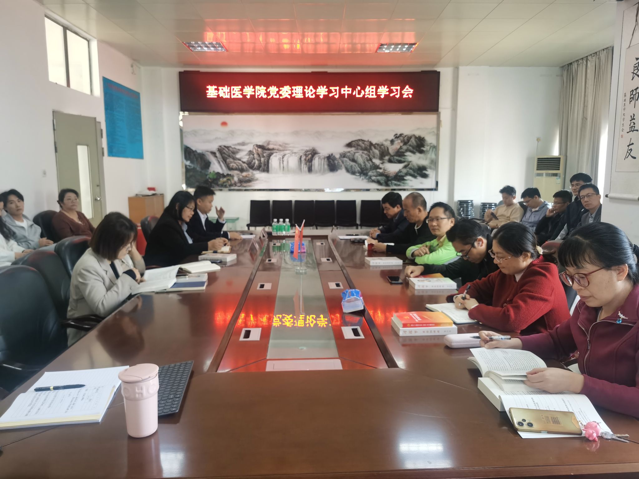 为深入推进党的二十届四中全会精神在学院落地生根,切实把全院师生的思想和行动统一到党中央决策部署上来,12月3日上午,基础医学院党委以“深入学习贯彻党的二十届四中全会精神,擘画“十五五”时期学院高质量发展新蓝图”为主题,在两校区学院会议室召开理论学习中心组(扩大)学习会。