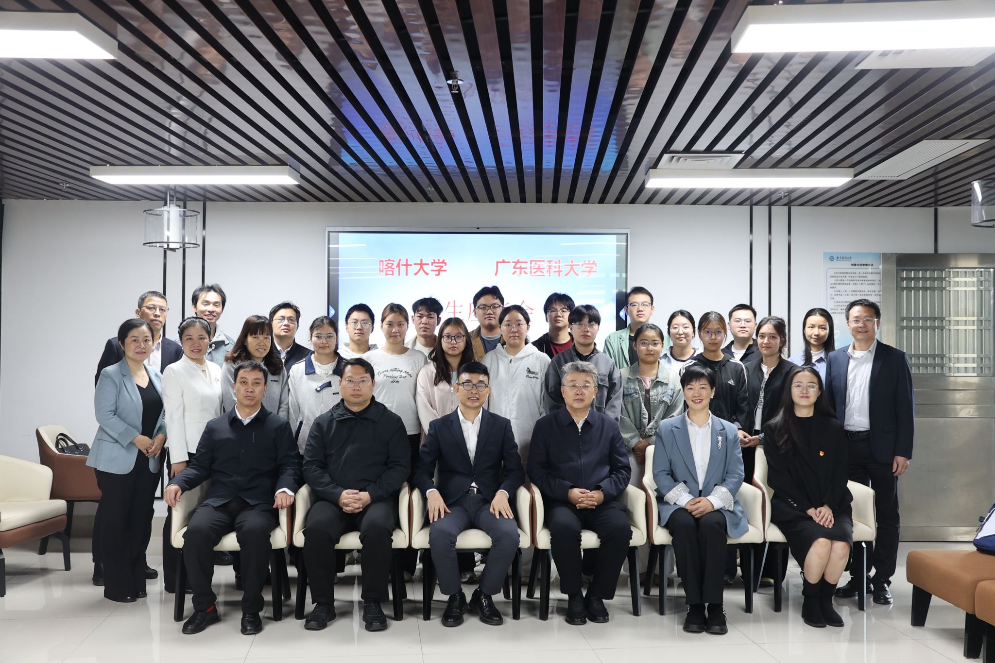 喀什大学党委副书记赵斌对广东医科大学长期以来对喀什大学医学院的支持和帮助表示感谢,希望以此次交流为契机,进一步加强与广东医科大学的沟通与交流,积极开展师资交流、人才培养、科研创新等方面的交流,推动实现两校共同发展、互利共赢。