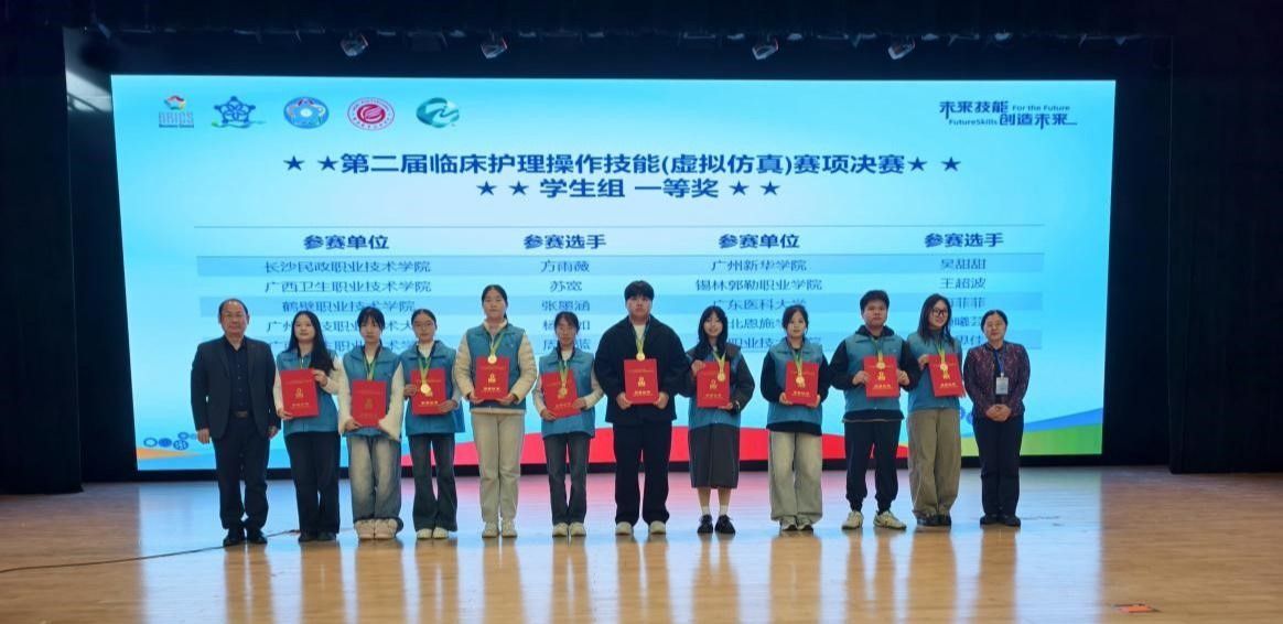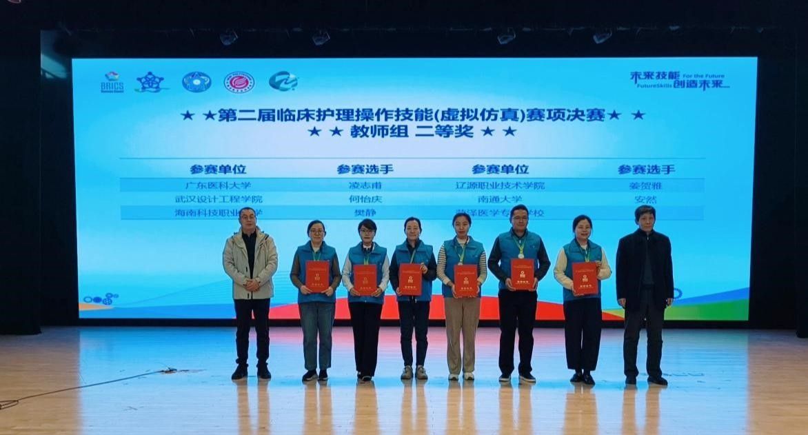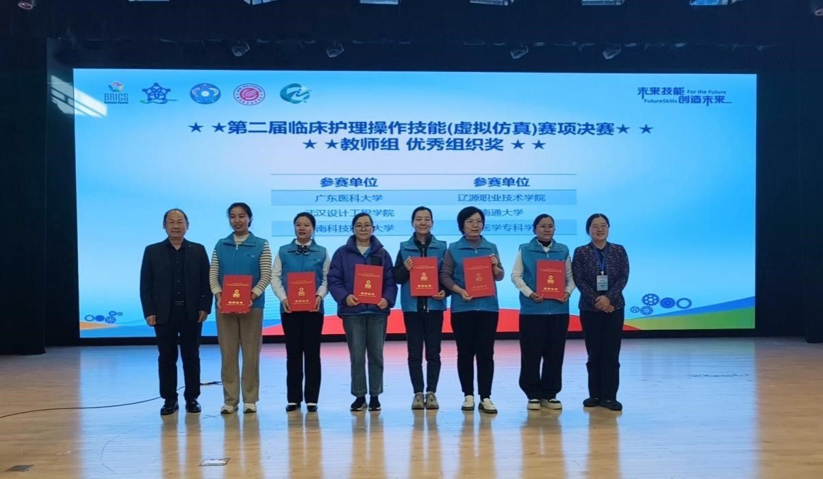 2025年12月6日,“一带一路”暨金砖国家技能发展与技术创新大赛暨第二届临床护理操作技能(虚拟仿真)赛项决赛在河南省鹤壁市圆满落幕。我校第二临床医学院组织师生参赛队伍以扎实的理论功底和精湛的操作技能赢得了评委专家的一致认可。在学生组比赛中,梅菲菲同学获斩获一等奖(金牌)、彭凯、郑单丹同学均获三等奖(铜牌)。教师组中,杨丰、凌志甫和杨如杏老师获二等奖(银牌)、指导教师杨丰荣获“优秀指导教师”称号,我校也凭借出色的组织表现,获得“学生组最佳组织奖”和“教师组优秀组织奖”。