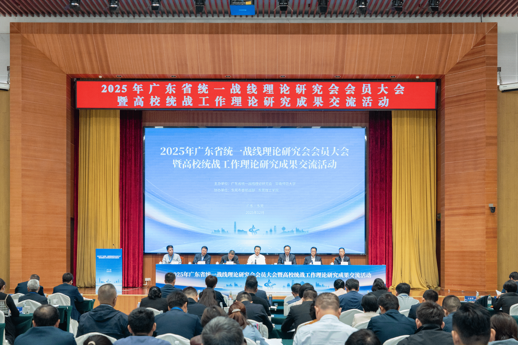 12月10日-11日,2025年广东省统一战线理论研究会会员大会暨高校统战工作理论研究成果交流活动在东莞举行。广东省委统战部常务副部长郭汉毅、省委统战部副部长、省统一战线理论研究会会长黄育振等领导,广东省统一战线理论研究会会员和相关高校统战部代表,以及省直有关单位和省各民主党派、各地级以上市党委统战部相关部门负责人120人参加会议。我校有3项成果获“2025年度高校统战工作理论研究创新成果表彰”。