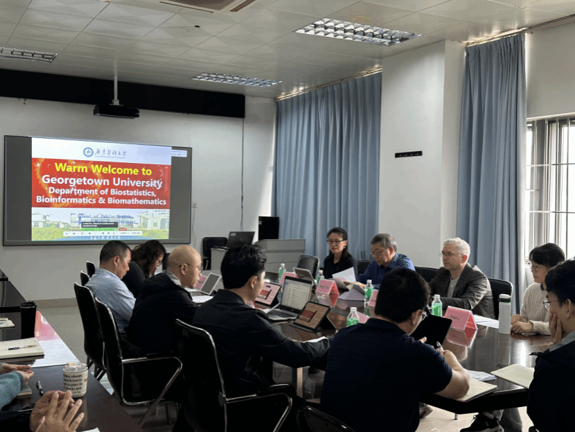 2025年12月10日上午,美国乔治城大学(Georgetown University)生物统计、生物信息与生物数学系(Department of Biostatistics, Bioinformatics & Biomathematics)一行四人访问广东医科大学公共卫生学院,双方围绕人才培养、课程建设、AI赋能教学及科研合作等主题开展了深入交流。