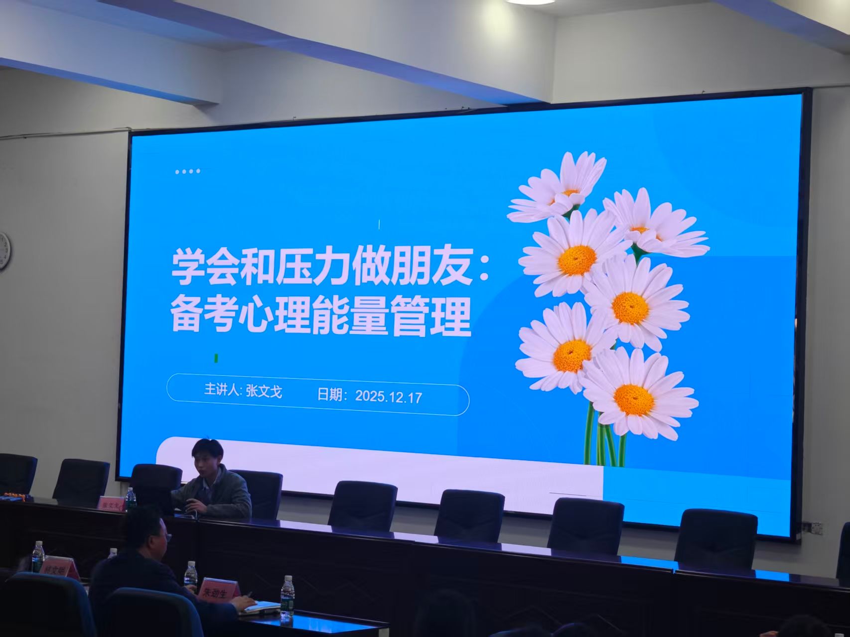 为深入贯彻落实广东省“双百行动”部署要求,深化全口径、全方位融入式帮扶工作,助力霞山区基础教育心理健康工作,广东医科大学学工部于12月17日下午在湛江市第二十一中学开展了主题为《学会和压力做朋友:备考心理能量管理》高三心理调试讲座。讲座邀请了广东医科大学附属医院心理科医师张文戈老师主讲。湛江市第二十一中学相关负责同志以及1200多名高三学子参与了此次讲座。