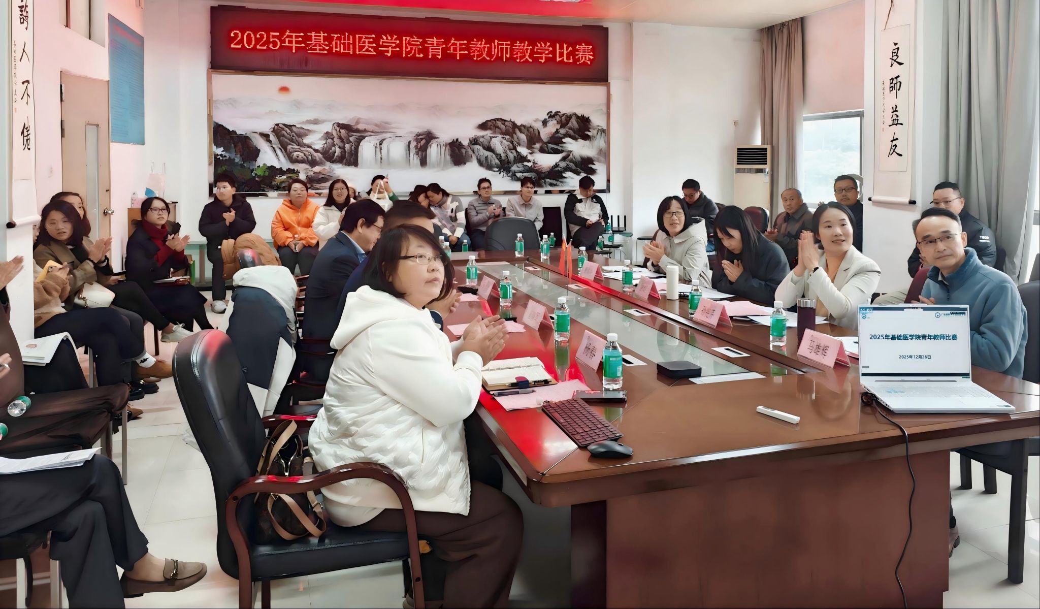为深入贯彻落实习近平总书记关于教育、科技、人才工作的重要论述,特别是“坚持把教师队伍建设作为基础工作”的重要指示精神,紧紧围绕立德树人根本任务,夯实医学人才培养根基,推动基础医学教育教学改革与创新,12月26日上午,2025年基础医学院青年教师教学比赛在湛江校区与东莞校区同步举行。学院党委书记冯明英、院长崔晓军、副院长吴洪福、李祥勇、杨春及各教研室(系)正副主任、教学秘书、45岁以下青年教师和教学科人员参加,会议由副院长李祥勇主持。