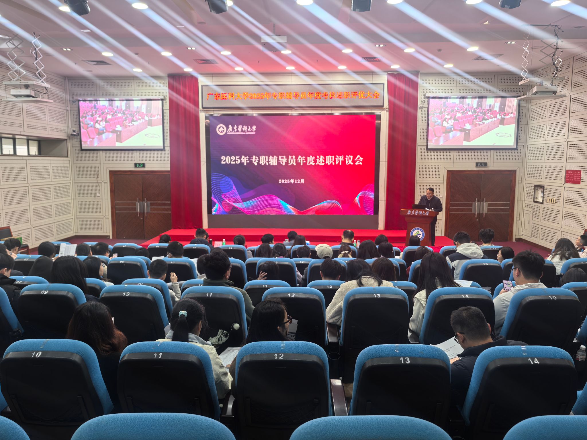 12月26日,学校召开2025年专职辅导员年度考核述职评优会议。学生工作部全体人员,各学院党委副书记、辅导员参加会议。会议由学工部副部长谢孝东主持。
