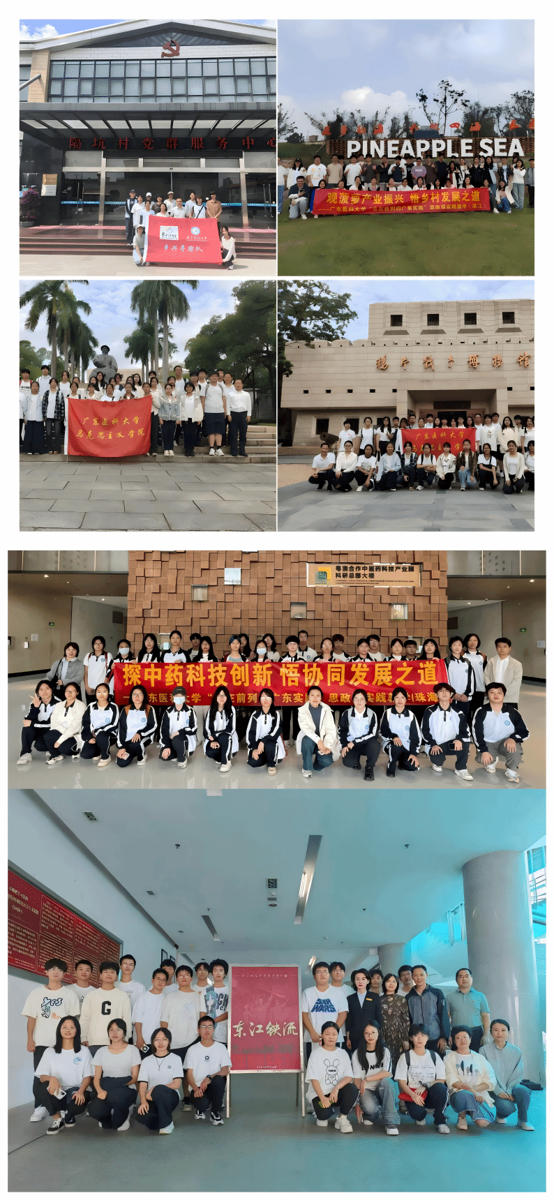 实践教学特色化与品牌化。持续深化“一课一特色”+实践精品项目改革。成功举办“东纵联大”系列活动,并邀请东江纵队纪念馆进校举办主题展览与现场教学,使红色文化浸润校园;组织学生参与“暖风中国行”志愿服务、暑期“三下乡”、东莞市多彩乡村实践等。开展“行走的思政课”,组织百名学生赴鸦片战争博物馆、东江纵队纪念馆、湛江徐闻“波罗的海”、珠海横琴粤澳合作中药科技产业园进行研学。教师指导学生获广东省多彩乡村实践活动奖项20余项。