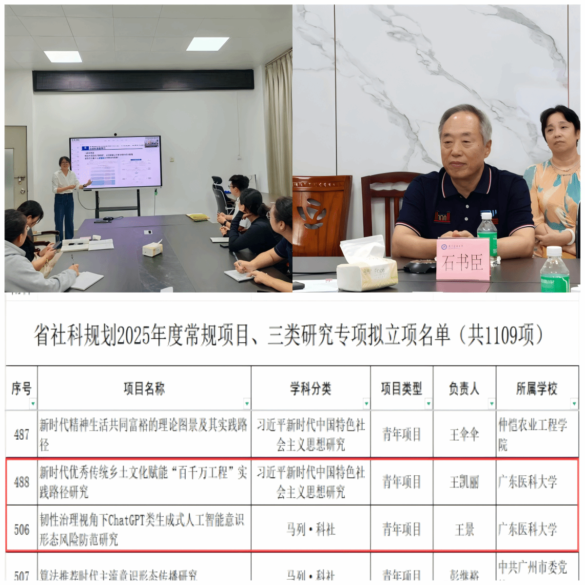 学科建设稳步推进。对照马克思主义理论一级学科硕士点申报要求,加强顶层设计与方向凝练。结合医学院校特色与地方资源,促进学科交叉融合。加强学科团队建设,2名教师被广东海洋大学聘为兼职硕士研究生导师。