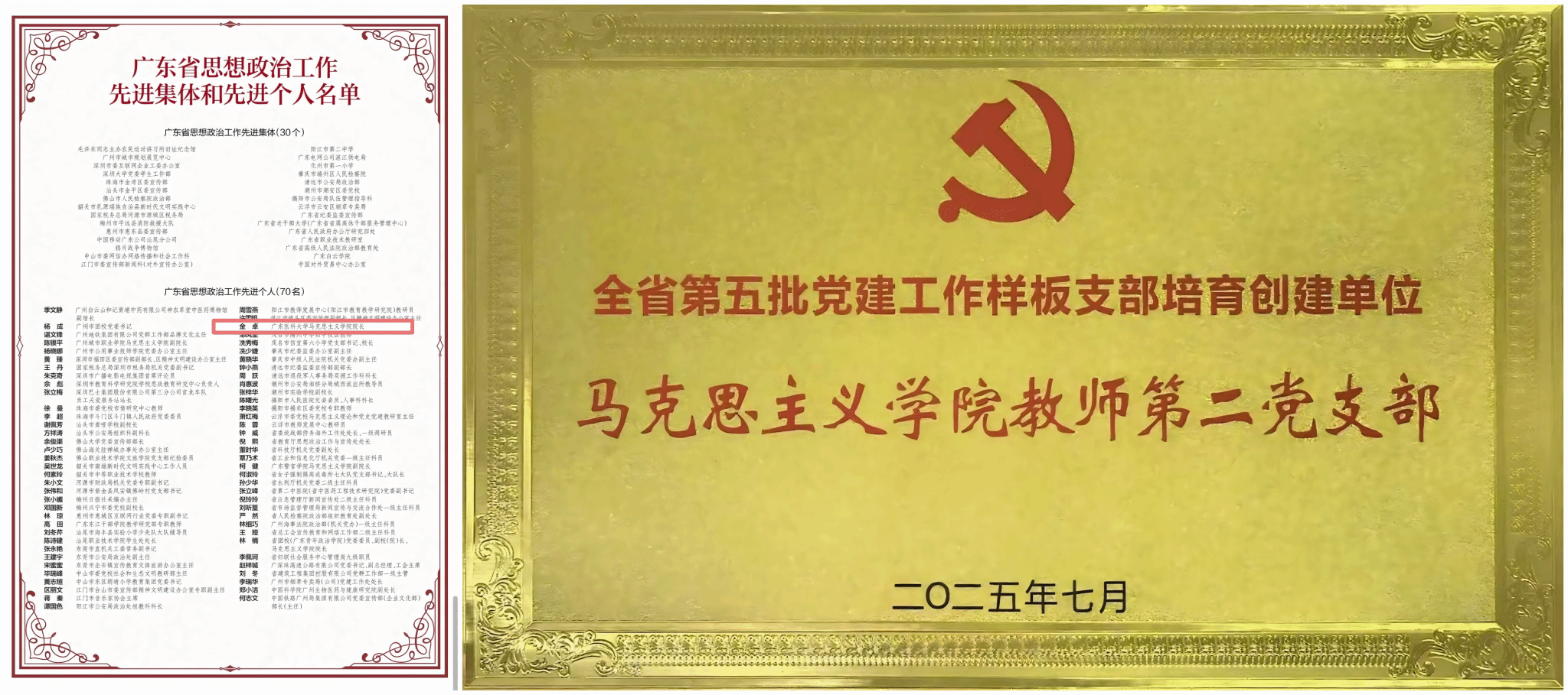 2025年,学院教职员工展现了昂扬向上的奋进姿态。学院第二党支部入选广东省党建工作样板支部培育创建单位,学院院长金卓教授荣获“广东省思想政治工作先进个人”称号。