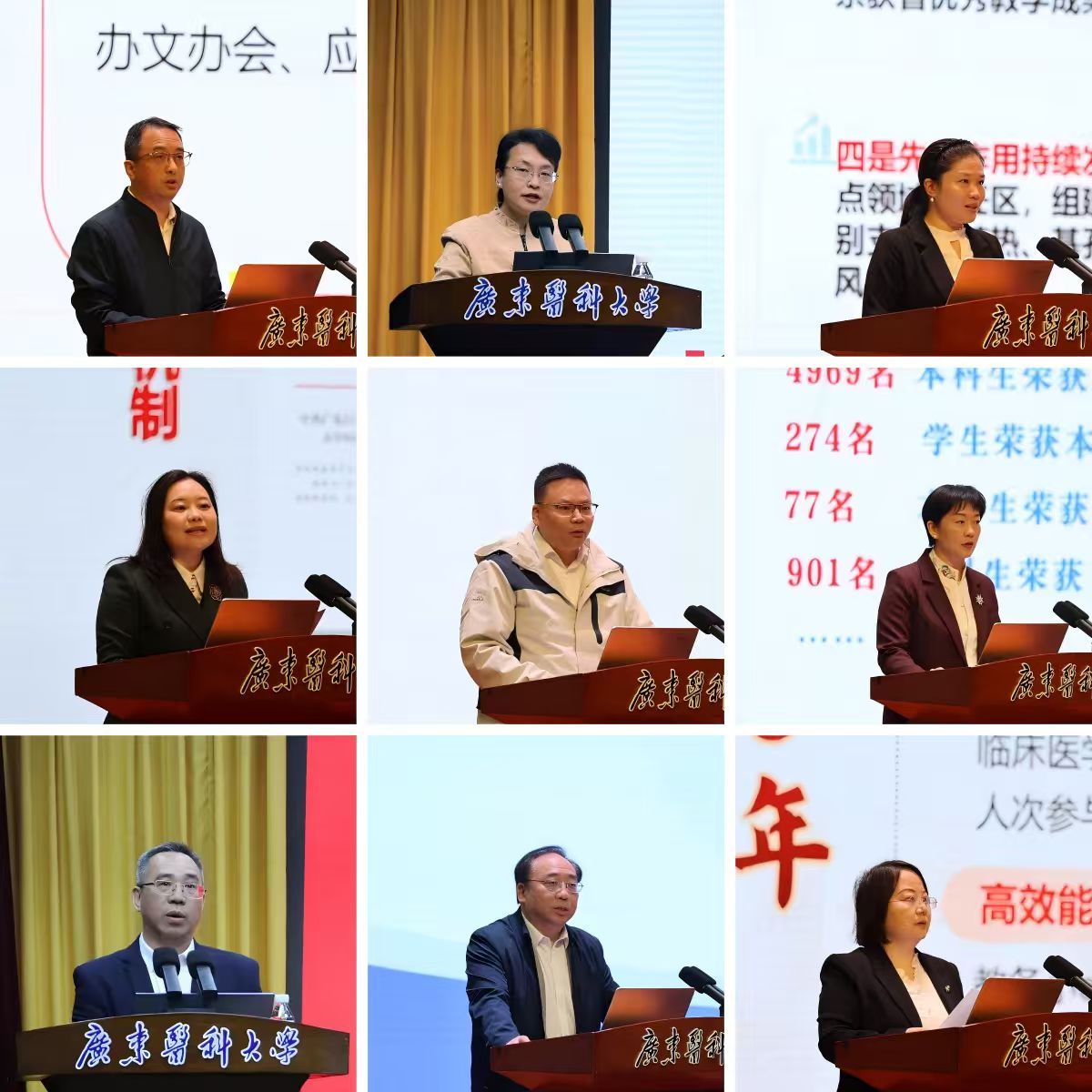 卢景辉在讲话中充分肯定了2025年学校各项事业取得的显著成效。他指出,2025年是“十四五”规划的收官之年和“十五五”发展的谋划之年,是学校“深化改革创新发展提质年”。一年来,全体师生医护员工,紧紧围绕学校中心工作,攻坚克难、锐意进取,学校各项事业发展取得了新的进展、新的成效,党的领导和党的建设更加坚强有力,人才培养能力全面提升,师资队伍水平显著增强,有组织科研深入推进,学科内涵建设持续深化,附属医院医教研工作都取得了新的进步和亮眼的成绩,医疗社会服务的效能持续彰显。
