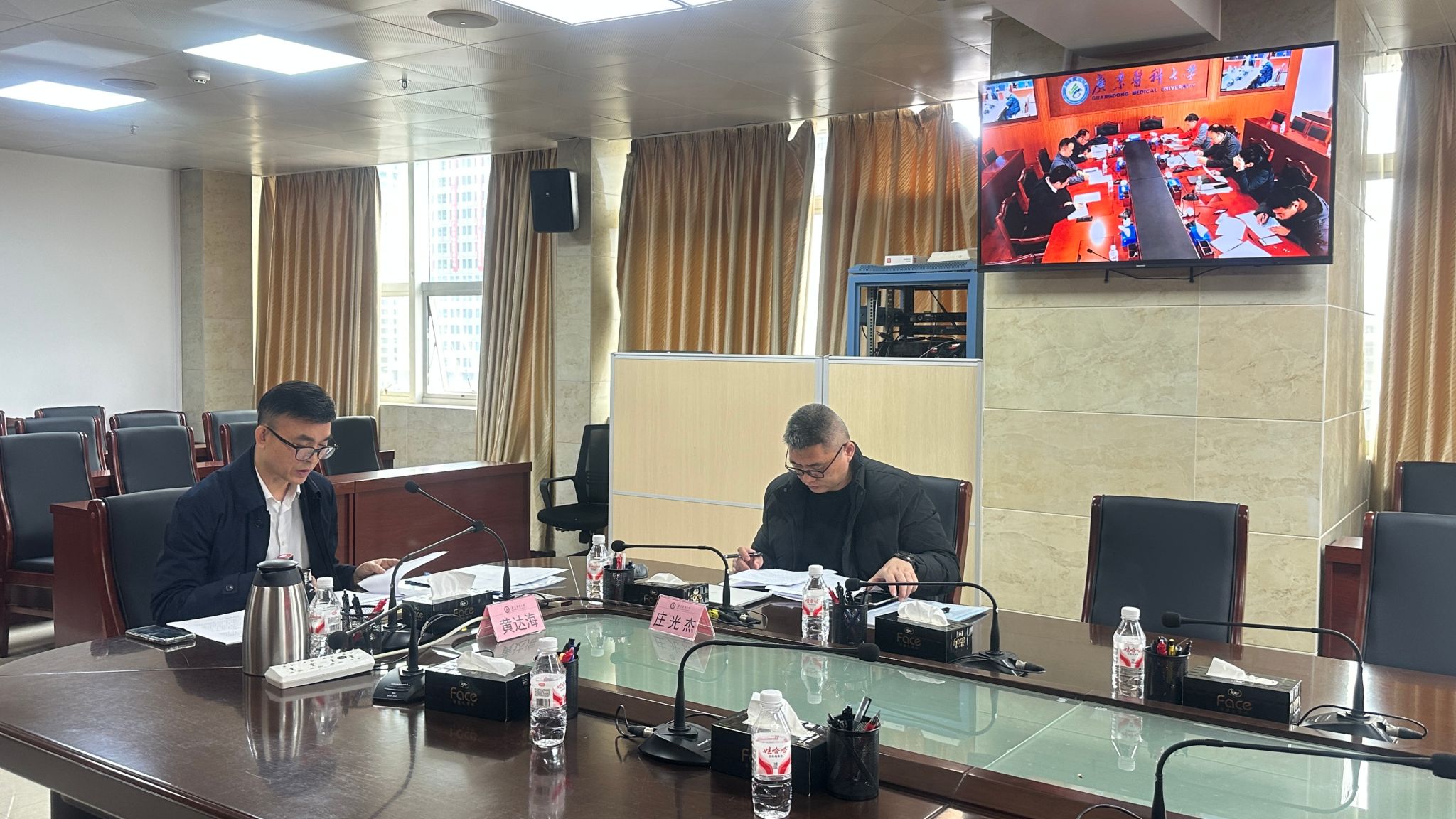 2026年1月23日上午,人文与管理学院党委在东莞、湛江两校区会议室召开2025年度党员领导干部民主生活会。学校党委副书记黄达海、组织统战部副部长庄光杰到会督导。学院全体党委委员参加会议,会议由学院党委书记陈明主持。