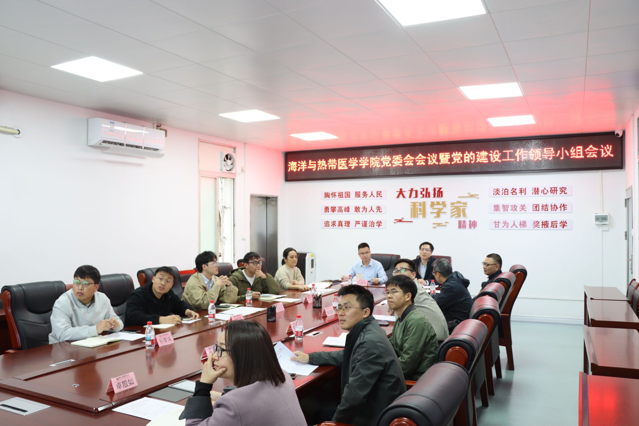 2026年3月10日下午,海洋与热带医学学院召开党委会和党的建设工作领导小组会议,深入学习贯彻习近平总书记关于树立和践行正确政绩观的重要论述,全面落实党中央关于开展树立和践行正确政绩观学习教育的决策部署,传达学校党委相关工作要求,对学院学习教育工作进行全面动员、系统部署。学院党政领导班子全体成员、党委委员、各党支部书记及辅导员参加会议,学院党委书记岑伟强主持会议并作讲话。