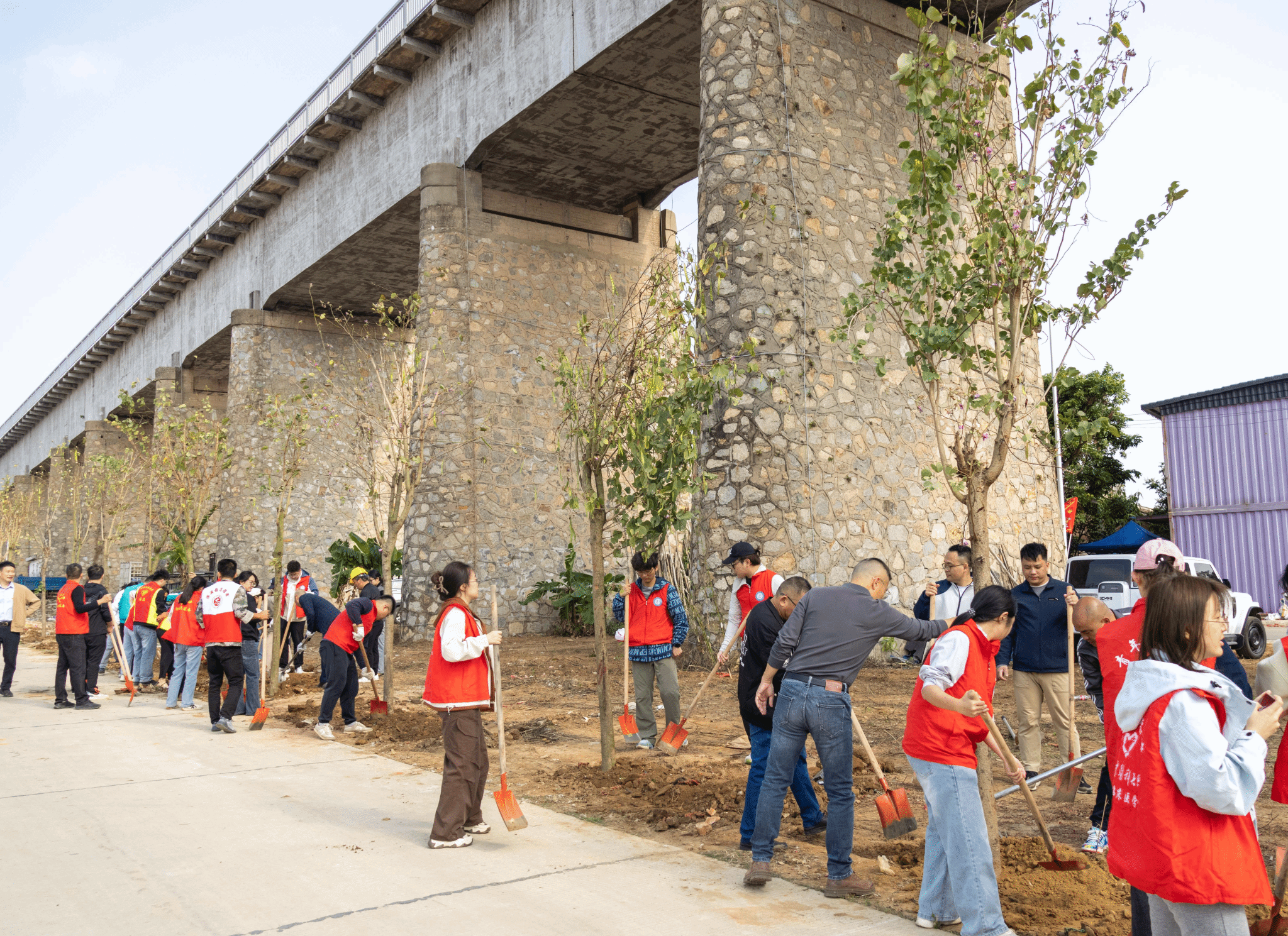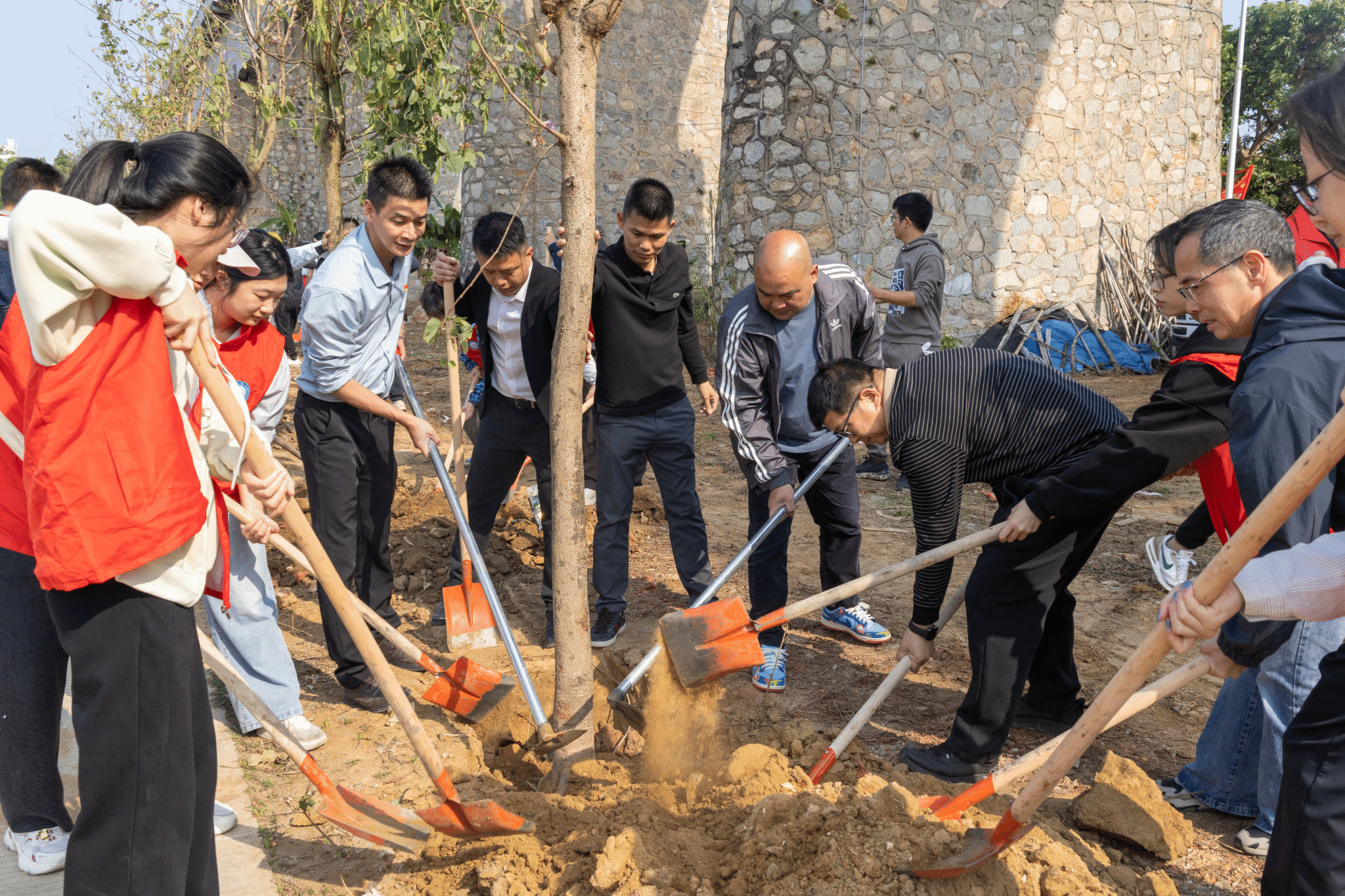 “双百行动”广东医科大学驻遂溪县服务队队长、学校团委书记陈炳权,遂城街道党工委书记蒋养、党工委副书记、街道办主任龙辉等班子成员,学院党委书记谭秋浩、副院长姚卫民、王双苗等30余名师生党员参加了活动。生物医学工程学院、医学技术学院一起为本次活动捐赠了部分树苗。