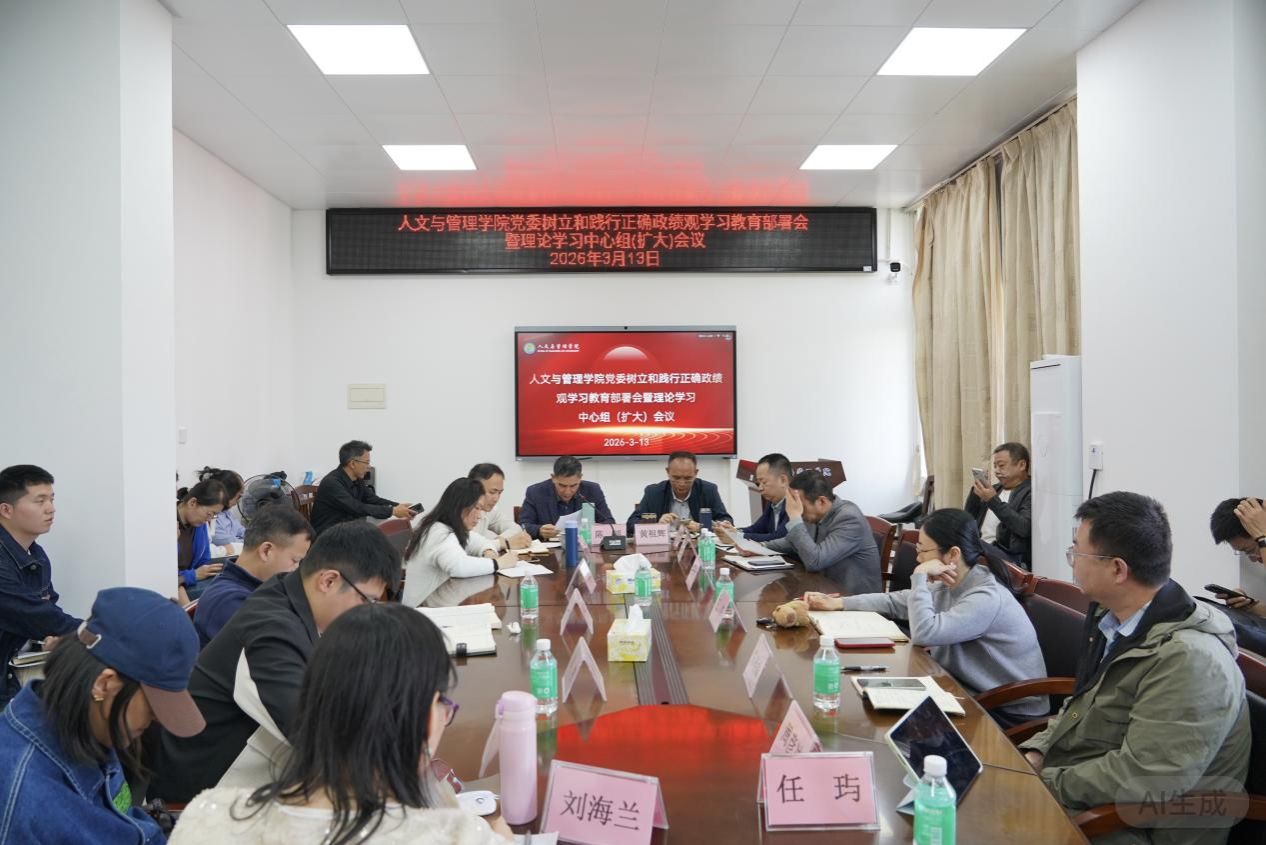 为深入学习贯彻习近平总书记关于树立和践行正确政绩观的重要论述,全面落实党中央、省委及学校党委决策部署,3月13日,人文与管理学院在219会议室召开树立和践行正确政绩观学习教育启动部署会。学院班子、各党支部书记、纪委委员、各系室主任和辅导员参会,会议由学院党委书记陈明主持。
