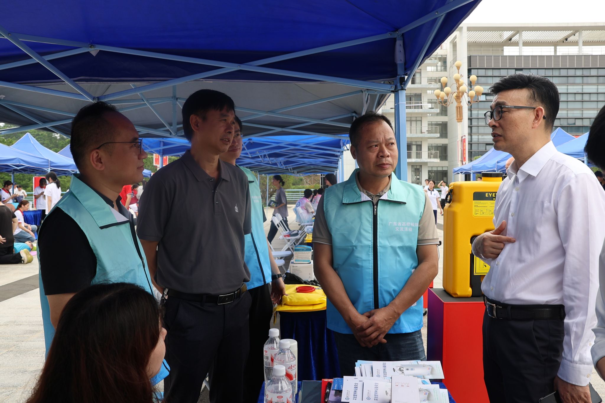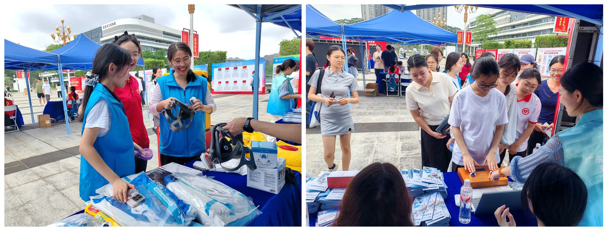 4月11日,随着“医路平安——广东医科大学2026年国家安全教育周活动”启动仪式的正式拉开,资产设备管理部统筹的实验室安全系列活动同步拉开序幕。当天上午,图书馆广场生物安全实践区设置宣传展位,摆满宣传科普小册子和安全防护防控设备,学校党委副书记黄达海带领各部门负责人莅临展位指导。师生们现场体验模拟生物电击等互动项目,工作人员详细讲解各类防护设备的原理和使用方法,师生们均表示将把生物安全知识应用到未来的学习和工作中。