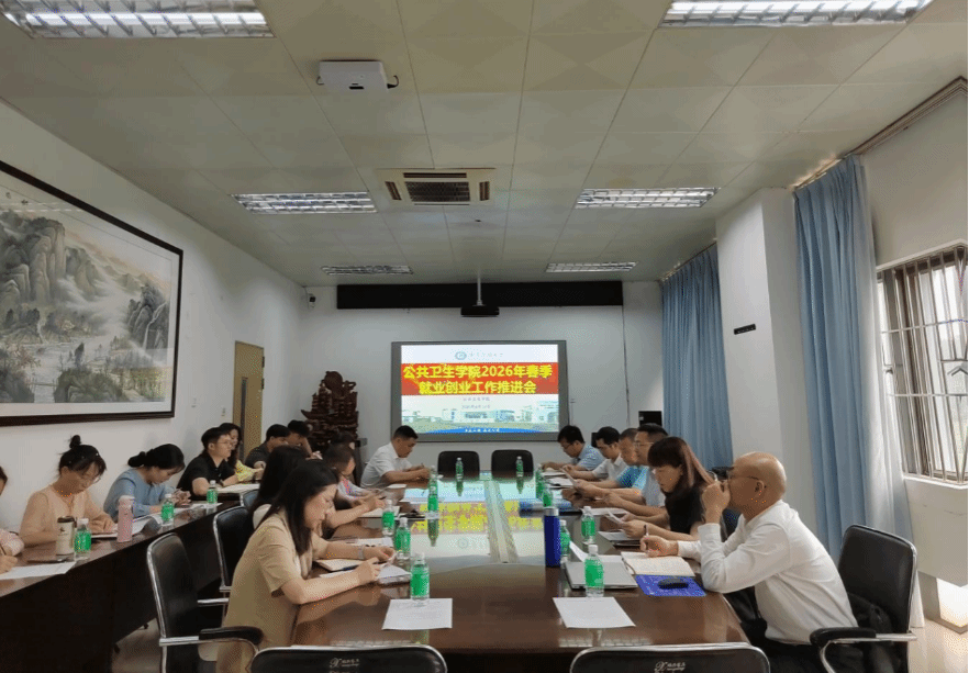 为深入学习贯彻习近平总书记关于高校毕业生就业工作的重要指示批示精神,将就业创业工作与树立和践行正确政绩观学习教育深度融合,4月14日下午,公共卫生学院召开2026年春季就业创业工作推进会。会议由学院党委杨卫书记主持,学院领导班子成员、全体辅导员、系(室)主任和校内硕士研究生导师参加了会议。