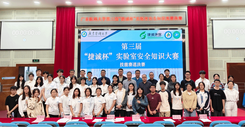 为筑牢校园安全防线,增强师生实验室安全意识,提升师生应急处置能力,11月16日,由学校资产设备管理部、保卫部、学生工作部、校团委联合主办,药学院团委承办、广东捷诚环保科技有限公司支持的广东医科大学第三届“捷诚杯”实验室安全知识大赛决赛在行政楼报告厅举行。学校资产设备管理部、宣传部、药学院、基础医学院等相关部门负责人、教师代表及企业代表出席活动并予以指导。