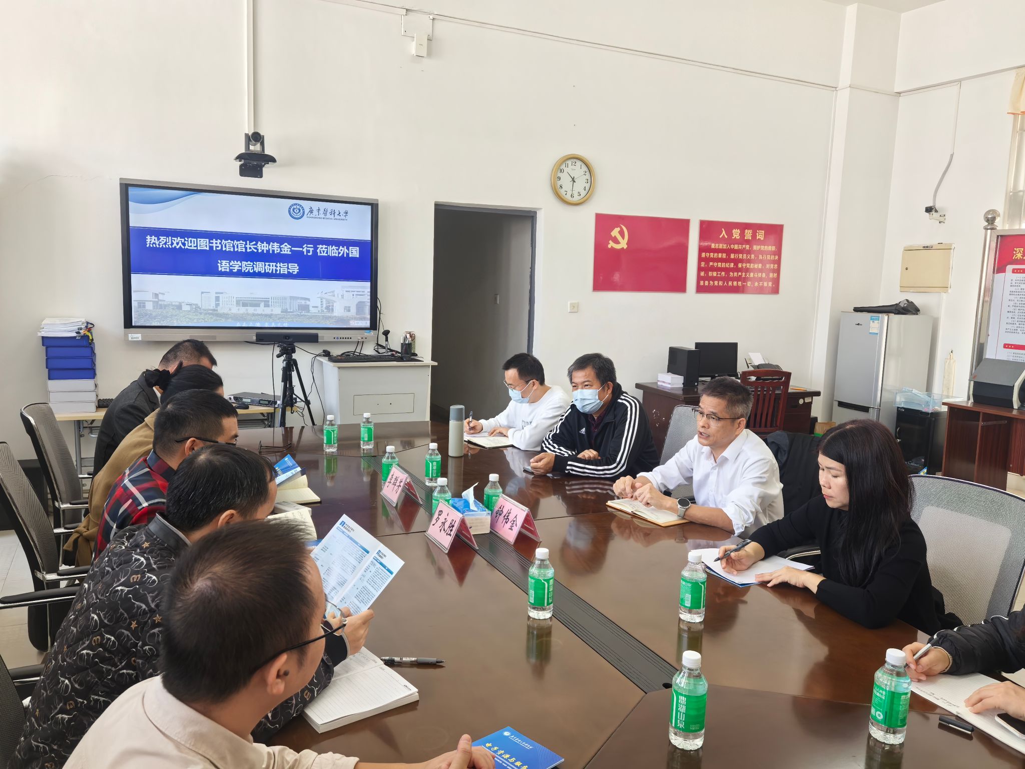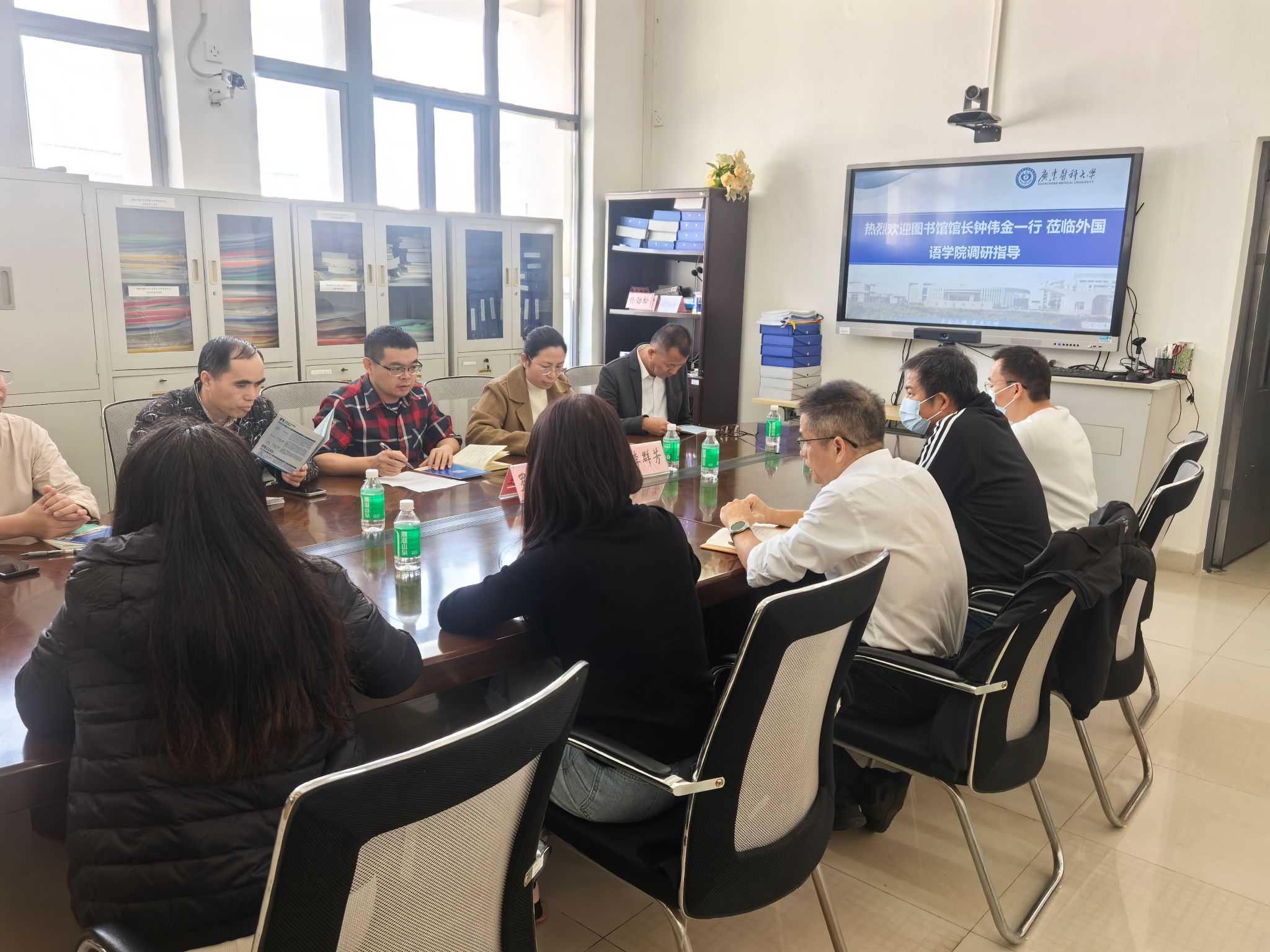 为进一步优化馆藏资源配置、提升服务质效,精准匹配师生的学习科研需求,12月3日上午,学校图书馆钟伟金馆长一行五人来到外国语学院开展资源建设与服务调研座谈。外国语学院副院长罗永胜、副书记李群芳及师生代表共同参会,双方围绕资源建设与服务提升展开深度对话。