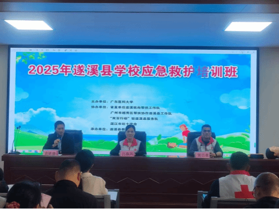 12月19日,遂溪县学校应急救护培训班(第三期)在遂溪县教育局启动,来自全县近百名中小学教师参加培训,培训由广东医科大学联合湛江市红十字会举办。