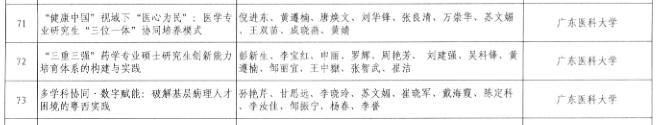 近日,广东省教育教学成果奖(研究生类)评选结果揭晓,我校研究生教育再创佳绩,斩获3项二等奖。分别是倪进东教授团队完成的《“健康中国” 视域下 “医心为民”: 医学专业研究生 “三位一体” 协同培养模式》、彭新生教授团队完成的《“三重三强” 药学专业硕士研究生创新能力培育体系的构建与实践》,以及孙艳芹教授团队完成的《多学科协同・数字赋能:破解基层病理人才困境的粤西实践》。三项成果紧扣 “健康中国” 战略与行业需求,分别聚焦医学人才协同培养、药学专硕创新能力培育、基层病理人才短缺破解等关键议题,体现了学校研究生教育 “立足行业、服务地方” 的鲜明导向。