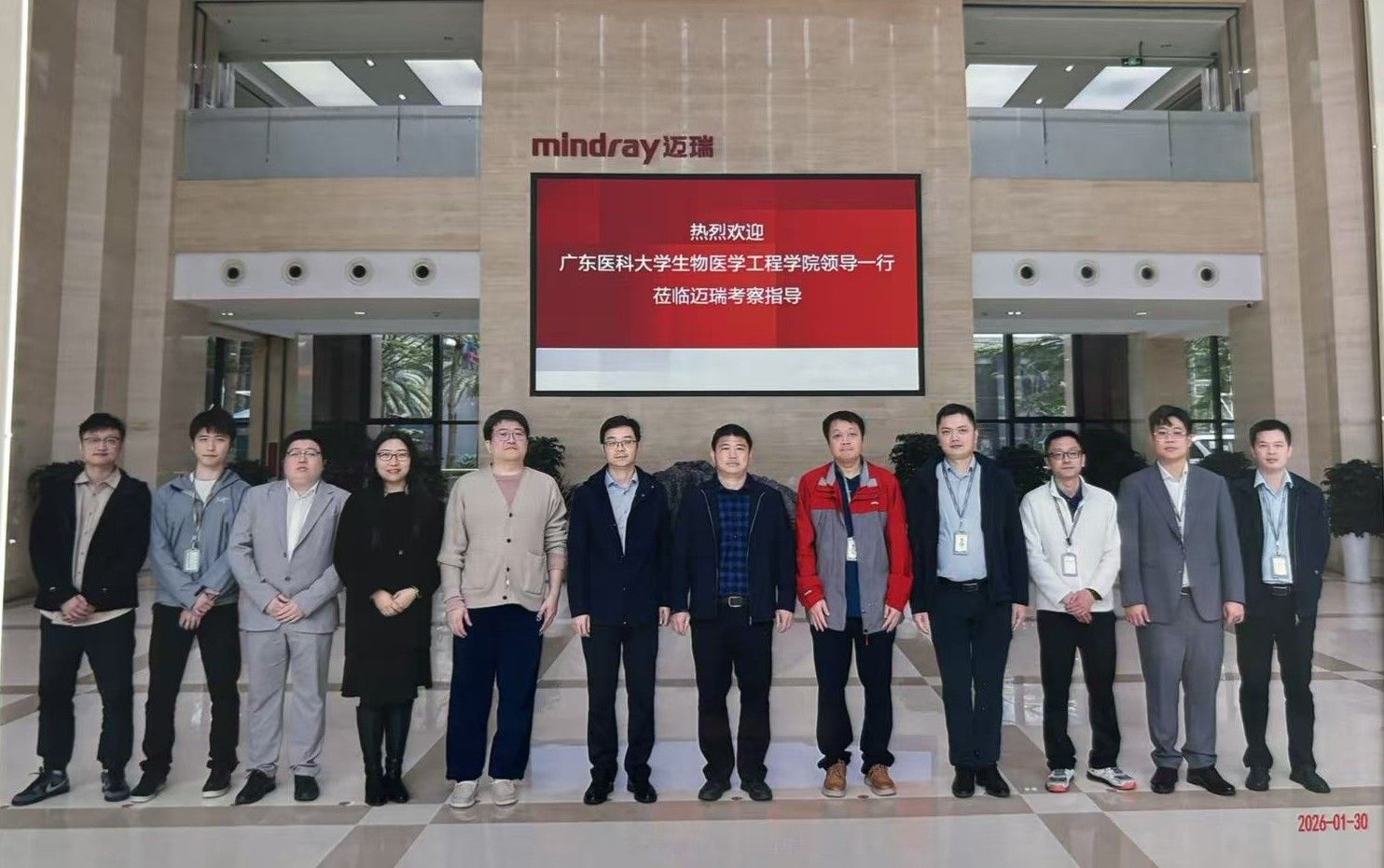 2026年1月30日,广东医科大学生物医学工程学院党委书记邓海宾、副院长崔金超、生工系主任马莎、生工系党支部书记王展、校友会会长刘沛源一行,前往深圳迈瑞生物医疗电子股份有限公司、深圳市安健科技股份有限公司开展走访交流。此次活动围绕校友春节慰问、实习生岗位调研、毕业生就业对接及校企合作深化等主题展开,搭建起学院与企业协同发展的沟通桥梁。