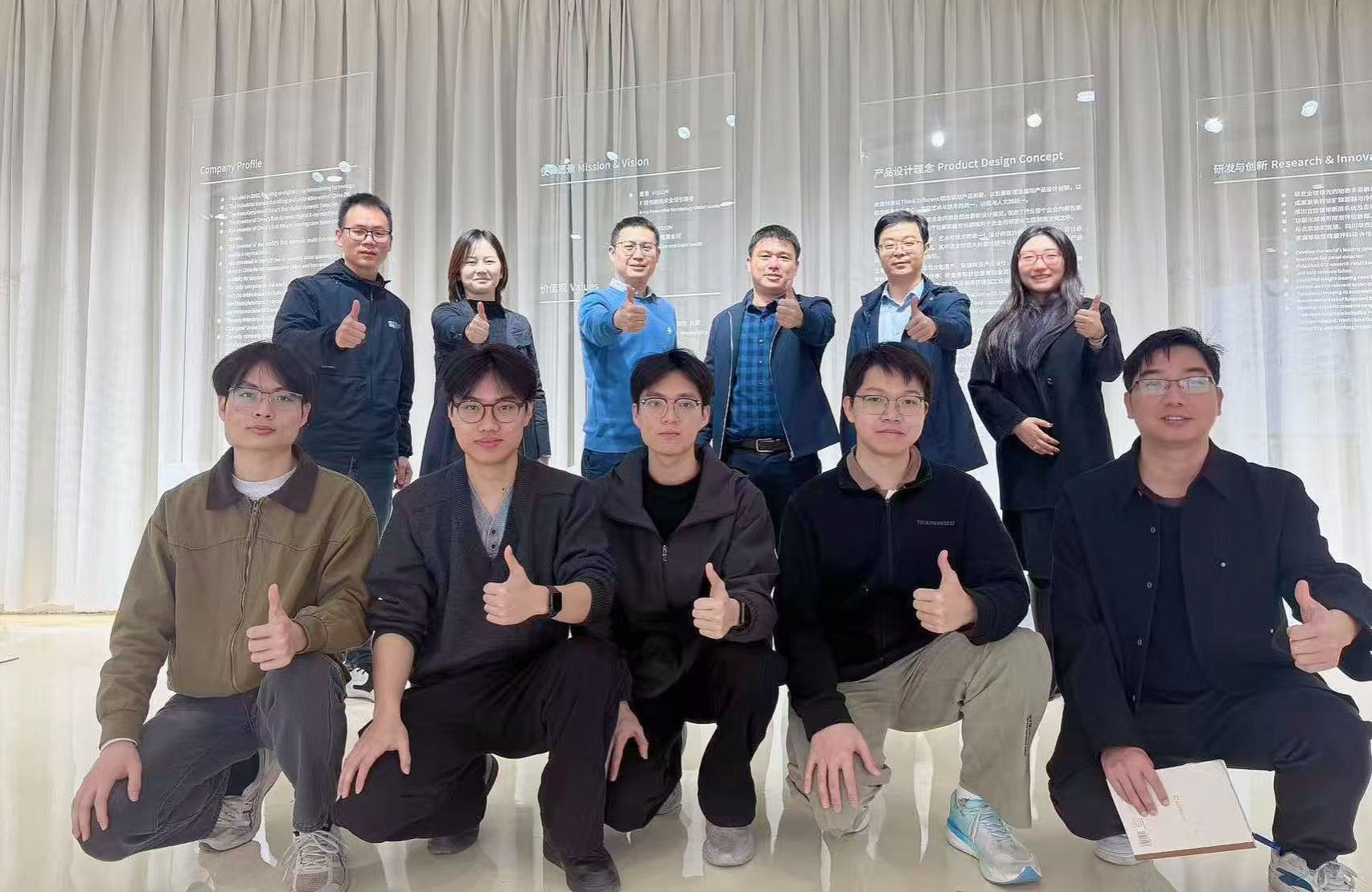 学院领导一行与安健科技领导、校友、实习生合影