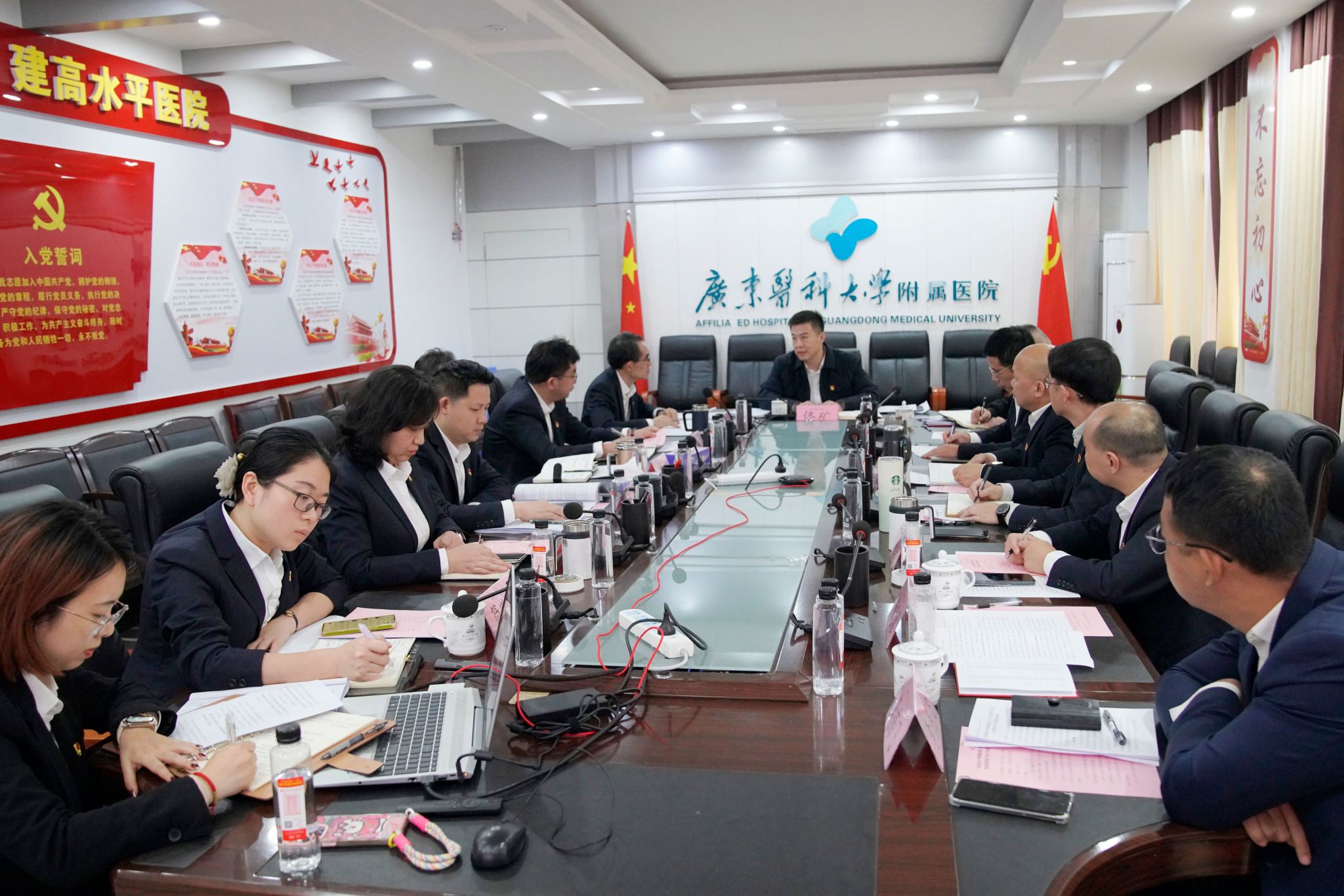 1月21日,广东医科大学附属医院召开2025年度党委领导班子民主生活会。会议以深入学习贯彻习近平新时代中国特色社会主义思想,全面贯彻落实党的二十届四中全会精神,锲而不舍落实中央八项规定精神,推进作风建设常态化长效化,着力提升班子凝聚力和战斗力,为医院“十五五”开局起步和高质量发展凝聚共识、夯实基础。广东医科大学党委常委、副校长佟矿,组织统战部副部长庄光杰到会指导,医院党委领导班子成员参加会议,医院相关职能部门负责人列席会议。会议由党委书记蔡定彬主持。