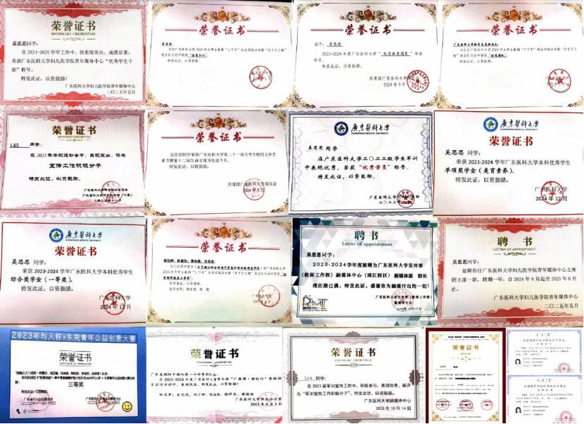 “责任重于泰山,仁心服务为本。”在广东医科大学的培养与磨砺中,吴思思始终不忘初心,以坚定的信念和扎实的行动,诠释着新时代医学生的责任与担当。她不仅在学业、科研、学生工作与志愿服务中全面发展,更在每一次实践中锤炼医者仁心、锻造专业能力。