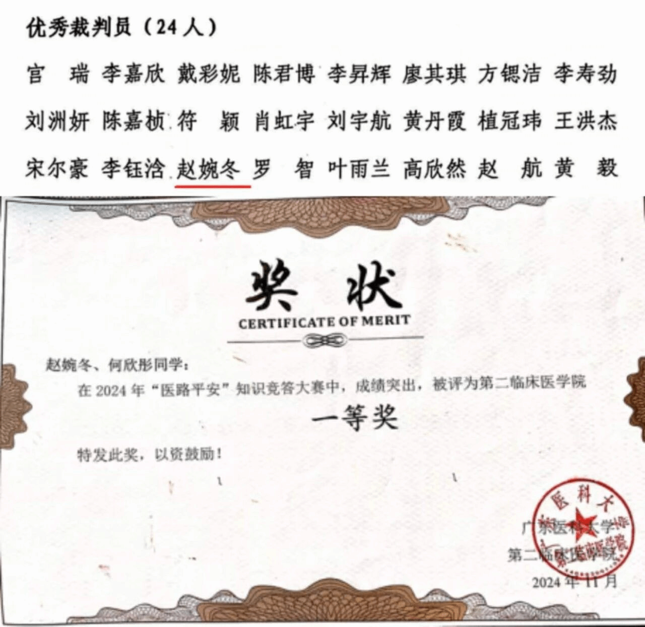 医者先健己。赵婉冬坚持体育锻炼,提高自己的身体素质,参与 “万步挑战” 活动斩获一等奖。她连续两年担任院运会裁判,公正执裁获 “优秀裁判员” 称号。她学习多方面知识,在 “医路平安” 知识竞答中拿下院级一等奖。